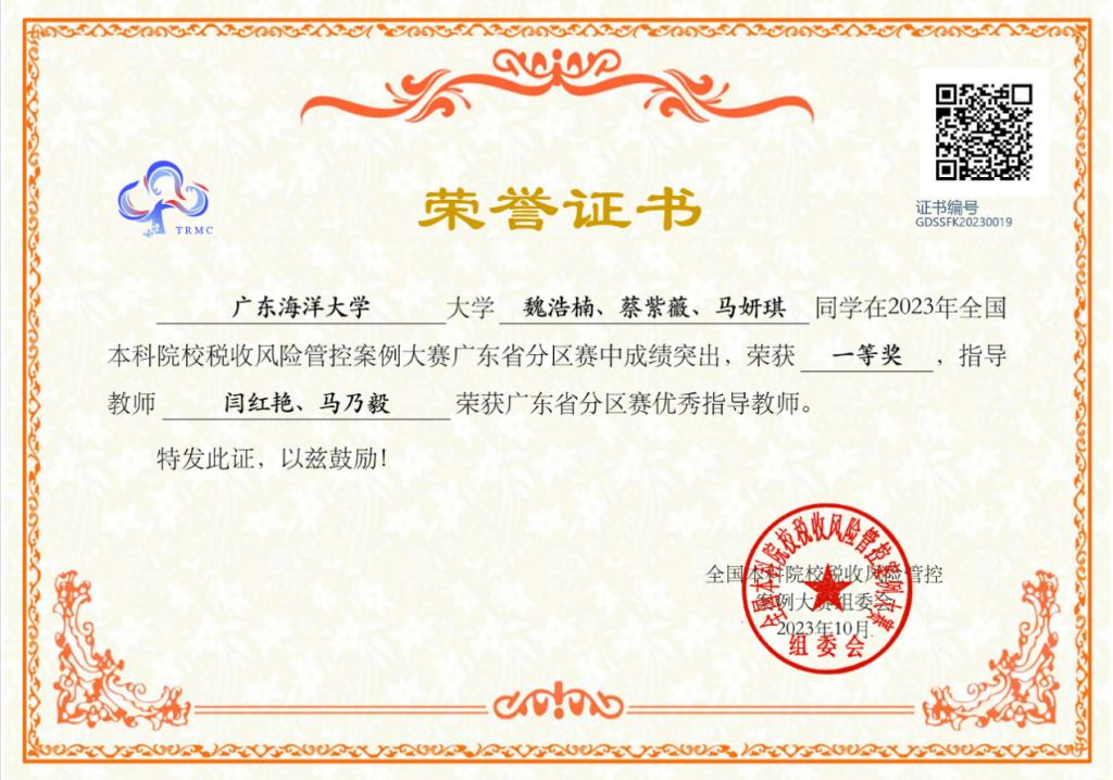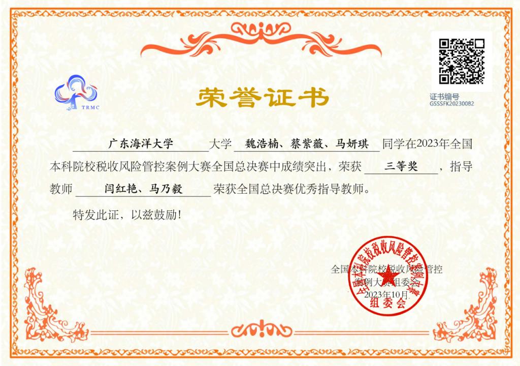 11月25日,2023全国本科院校税收风险管控案例大赛总决赛在浙江财经大学举行,此赛项系全国普通高校大学生竞赛榜单内竞赛项目,AC米兰管理学院会计学专业学生魏浩楠、蔡紫薇、马妍琪、曾惠琳、杨韵诗、吴星炫、李家欣、郭佳琬、吴雪容9名同学组成的三支代表队在会计系马乃毅和闫红艳两位老师指导下,荣获广东省赛一等奖1项和三等奖2项。同时获得一等奖的代表队取得参加总决赛的资格,并在总决赛中荣获三等奖。