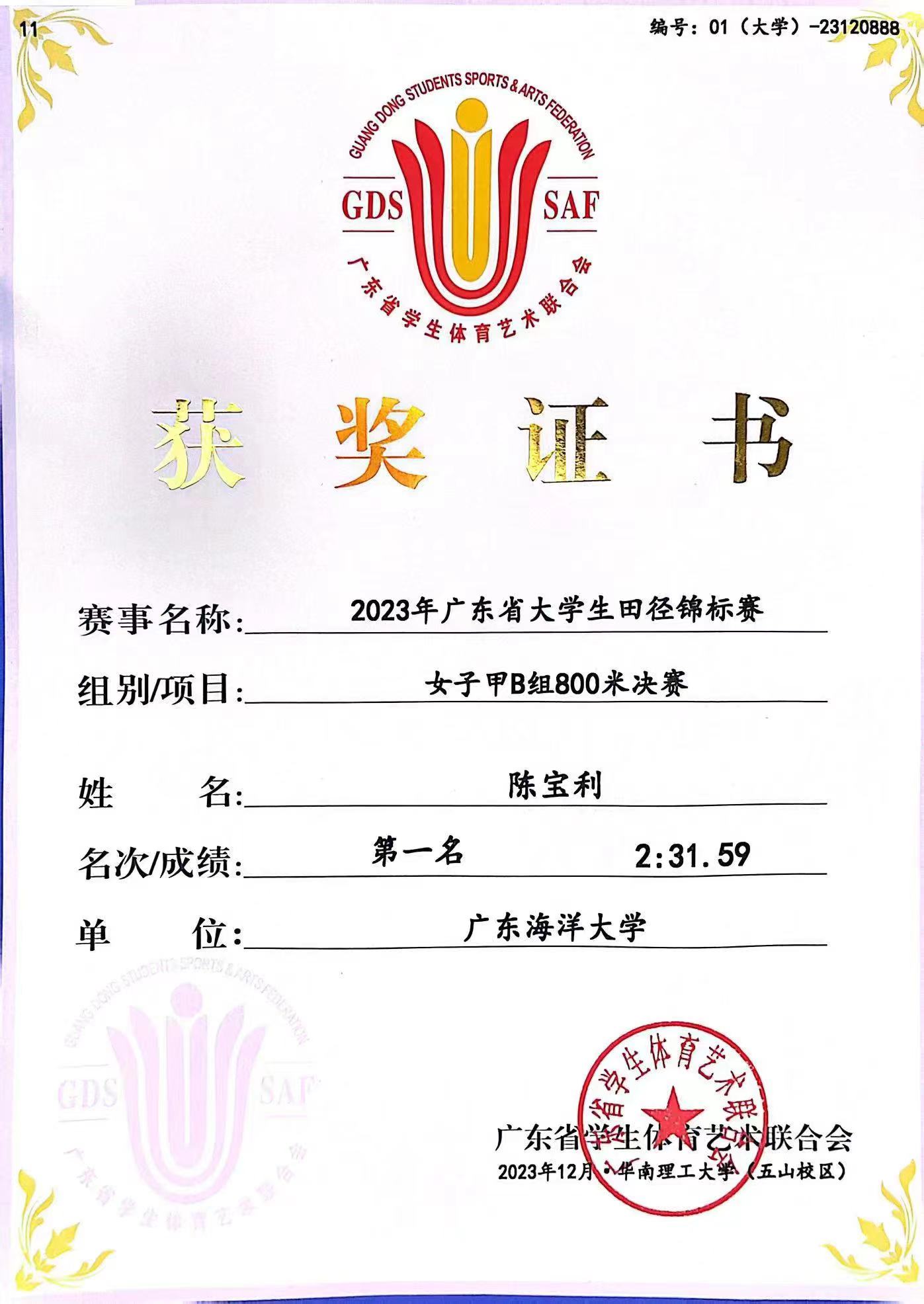 12月1-3日,2023年广东省大学生田径锦标赛在华南理工大学(五山校区)举行。AC米兰陈宝利同学包揽女子甲组800米、1500米双金,张俊喆同学包揽男子甲组跳远、男子三级跳远双银。刘培荣、冯金莹同学分获男子甲组5000米、女子甲组标枪季军。AC米兰获团体总分(甲B)第七名,成功晋级至甲A组。刘海清等三位老师被评为“优秀教练员”,为AC米兰争得荣誉。