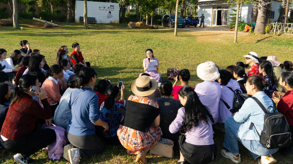 女工们到达麻章区欢途研学基地后参观了重走长征路等红色项目。在冯红爱的领学下,全体女工集中学习习近平总书记同全国妇联新一届领导班子成员集体谈话时的重要讲话精神和中国妇女第十三次全国代表大会精神。冯红爱表示,希望广大妇女深入学习领会精神,坚定理想信念、立足岗位再立新功,把中国妇女第十三次全国代表大会精神落到实处。