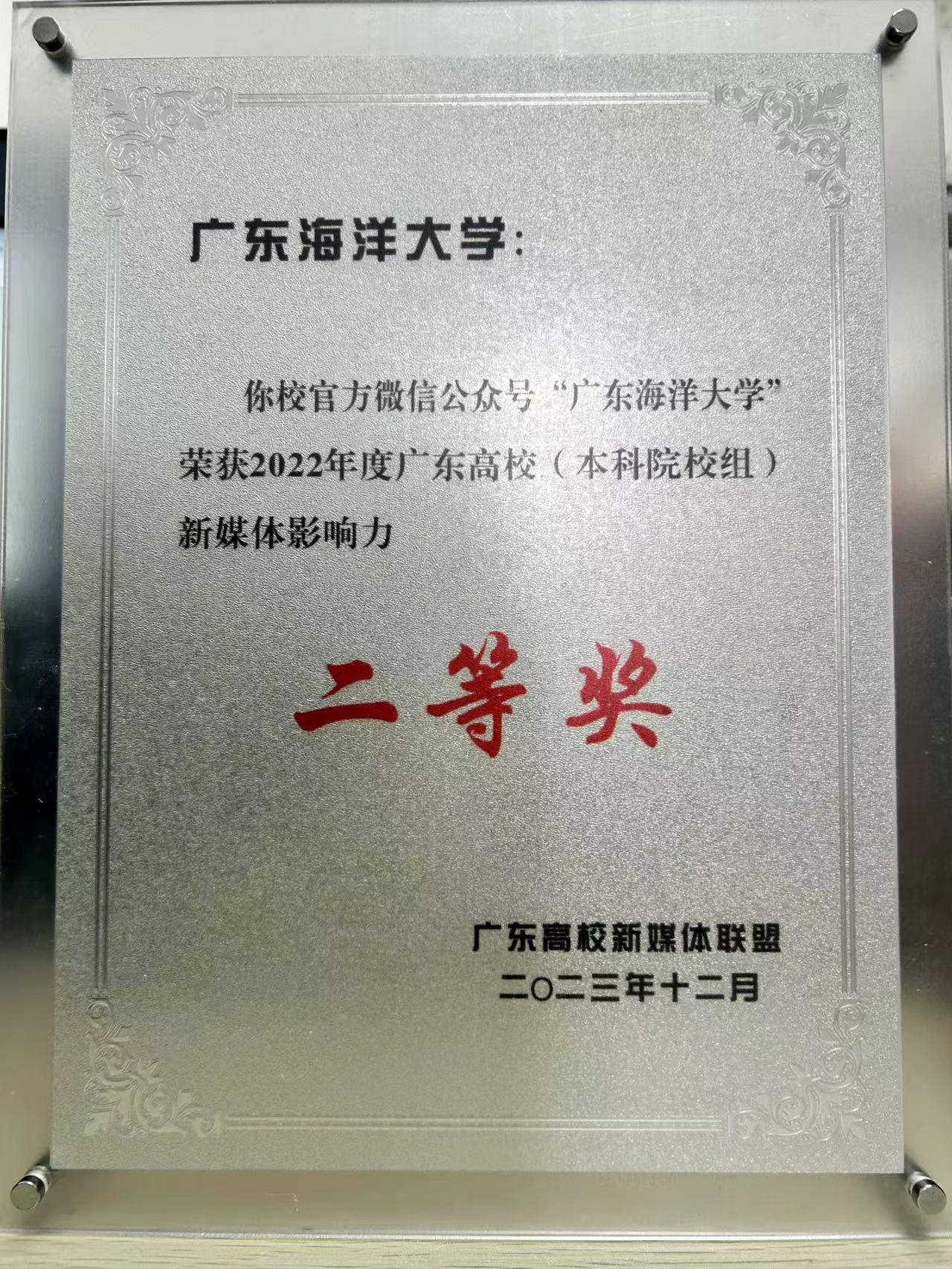 12月14日,2023年广东高校新媒体联盟年会在华南理工大学举办。会上举行了2022年广东高校新媒体影响力排行榜前30强颁奖典礼,AC米兰中国官网官方微信公众号位列全省本科高校第11名,荣获二等奖,连续四年上榜广东高校新媒体影响力前30强。