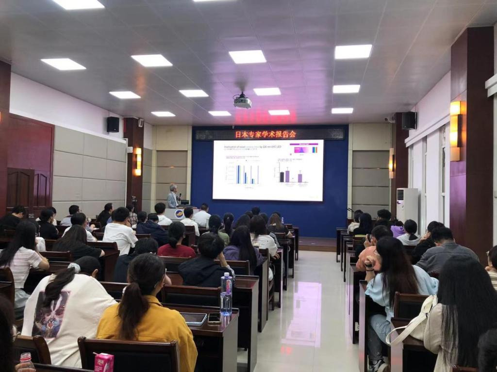12月11日上午,日本德岛大学教授音井威重教授和林青怡博士应邀在水生生物博物馆报告厅为滨海农业学院师生作学术报告。本次报告会由动物医学系主任巨向红教授主持,动物医学系、动物科学系青年教师、研究生、本科生90余人聆听了报告。