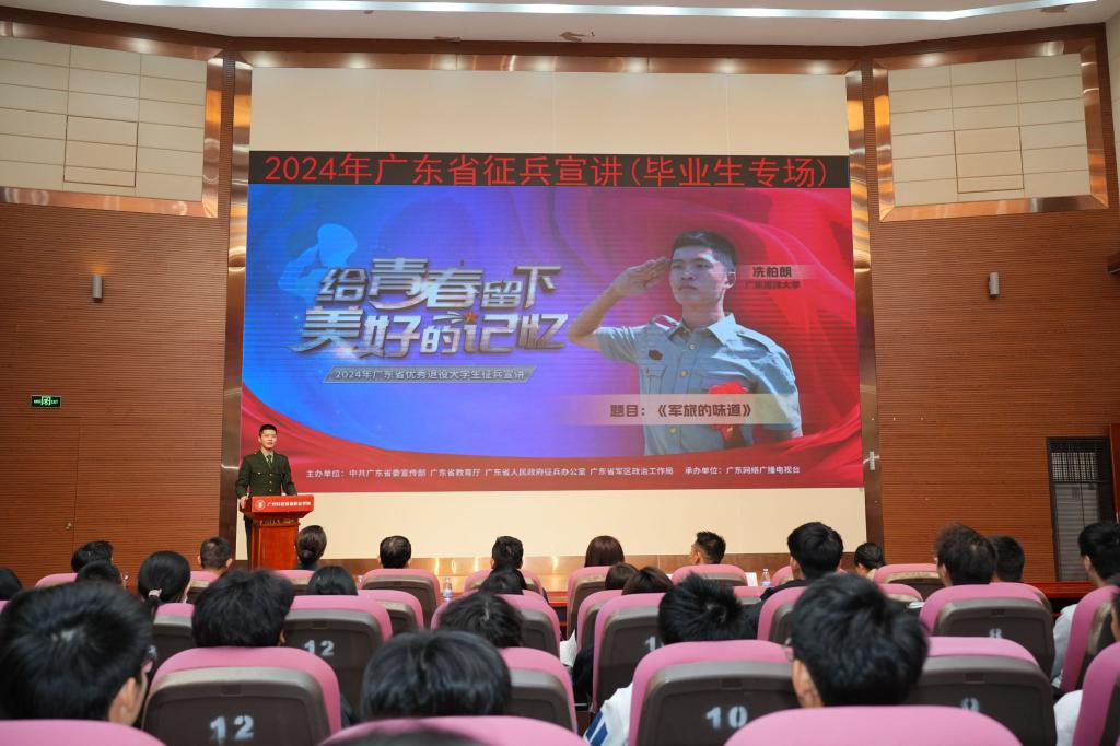 11月15-25日,由中共广东省委宣传部、广东省教育厅、广东省人民政府征兵办公室、广东省军区政治工作局主办,广东网络广播电视台承办的《给青春留下美好的记忆》广东省优秀退役大学生征兵宣讲活动分别在广州理工学院、广州科技贸易职业学院、广东理工职业学院、东莞职业技术学院、广东科贸职业学院等学校举办。此次活动由14名同学轮流宣讲,AC米兰外国语学院翻译1211班的退役大学生冼柏朗同学全程参与宣讲。
