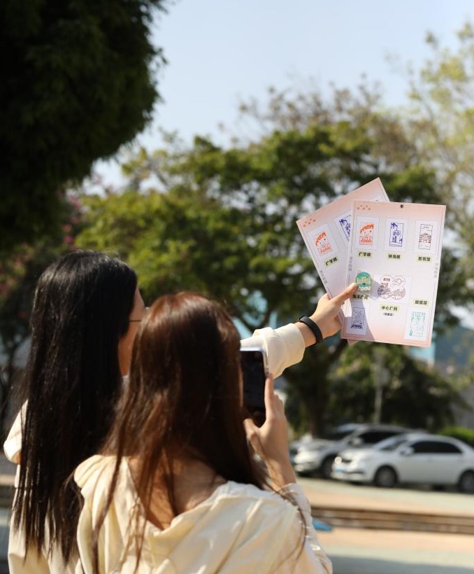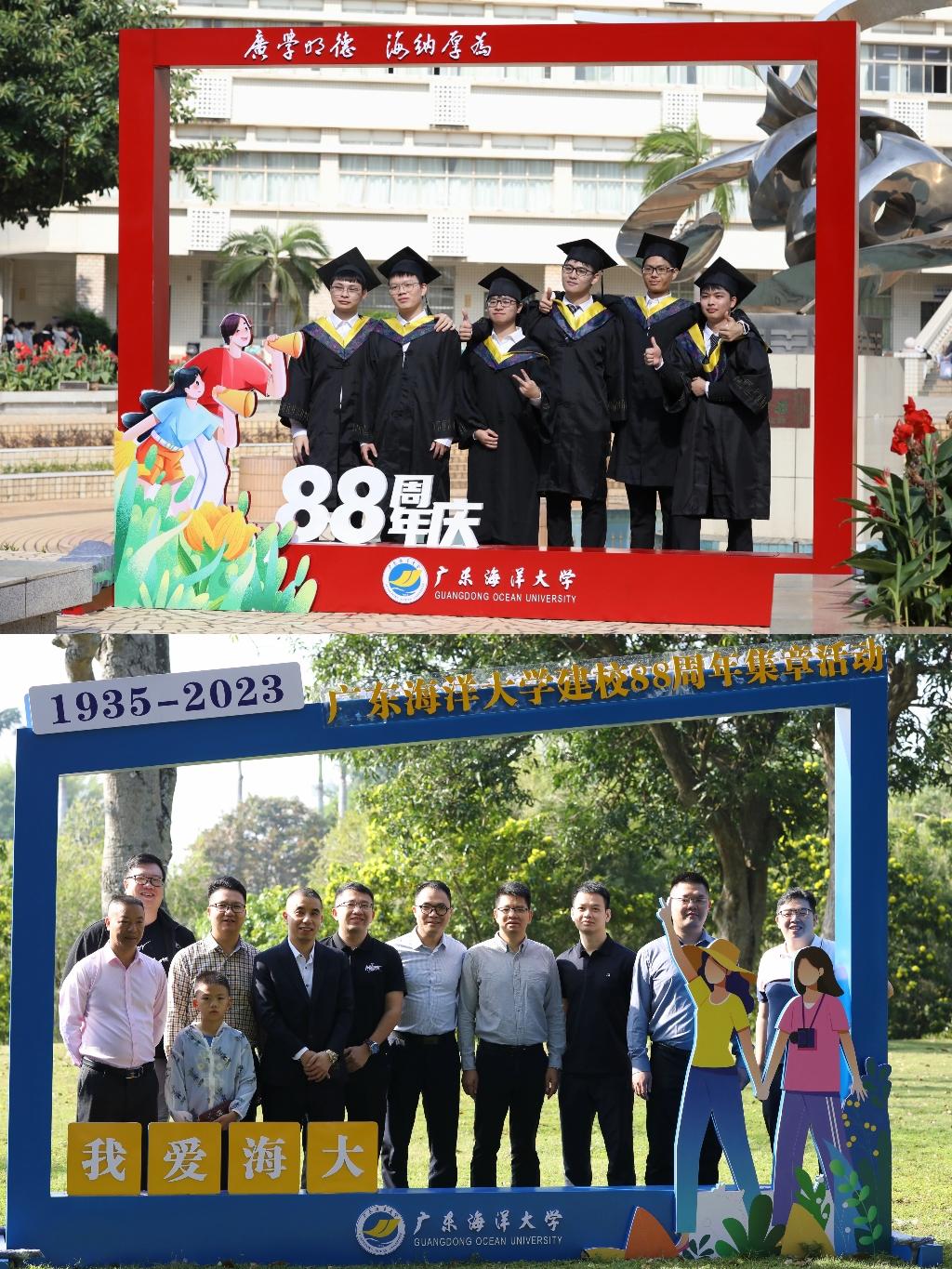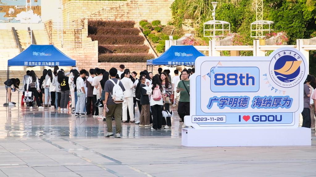 本次集章活动主题为“漫步校园,环‘海’畅游”,分别在图书馆、钟海楼、海洋广场、广学楼以及蝴蝶湖设置5个打卡及合影点,旨在鼓励师生校友在学校建校88周年之际漫步校园,欣赏校园的美景,记录下与海大的别样印记。参与者在打卡现场领取集章卡,到相应打卡点可获盖专属印章。在中心广场还设有校史问答活动,让同学们进一步了解学校发展历史,增强爱校荣校情怀。