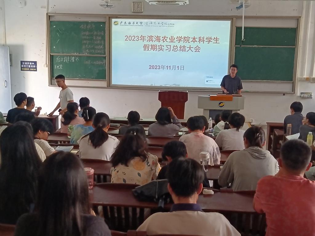 11月1日,滨海农业学院2023年暑假学生顶岗实习总结交流分享会在钟海楼04021室举行。指导老师翟周、王广旭以及学院近130名大一至大三年级学生参加分享会,会议由动科卓越1211班的周杰同学主持。