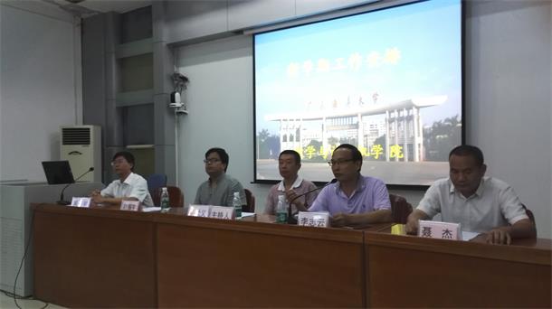 谢仕义首先向全体教职工介绍了学院新的党政领导班子成员及分工情况。