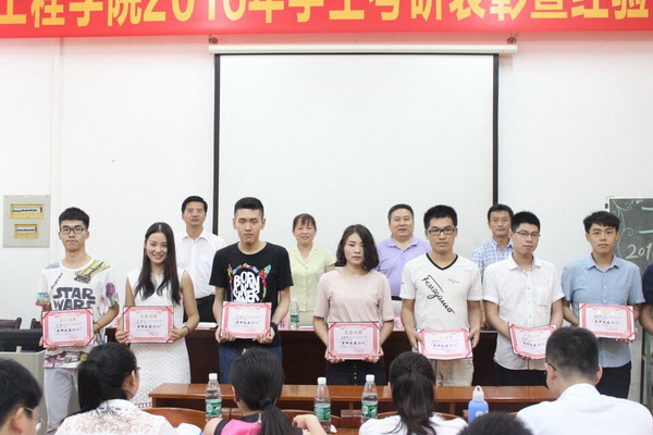 本次会议旨在动员和鼓励更多的在校学生参加研究生入学考试,提供一个与考研成功学长交流的平台,及时解决和处理在考研过程中遇到的各种困难和问题。本次会议由欧卫军主持,会上邓伟宣读了学院关于表彰2016年考研先进个人的决定,学院领导为20名考研成功的毕业生颁发了证书和奖品。