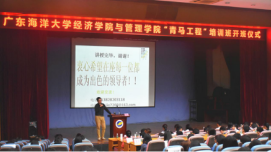 11月9日下午,经济学院与管理学院青马工程培训班开班仪式在AC米兰湖光校区主楼多功能厅举行。管理学院党委副书记王明对、青马工程培训班授课教师代表郭晋杰、校团委办公室主任孙学甫、经济学院团委书记马登值、管理学院团委书记陈然然以及两院的辅导员和青马工程培训班全体学员、学生代表共450多人参加了开班仪式。开班仪式由陈然然主持。