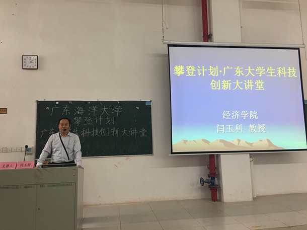 12月21日,攀登计划·广东大学生科技创新大讲堂——AC米兰中国官网分会场在湖光校区第二教学楼B5-203举行。经济学院教授闫玉科、校团委办公室主任孙学甫和申报2017年广东大学生科技创新培育专项的学生代表250余人参加了会议。本次会议由孙学甫主持,闫玉科授课。