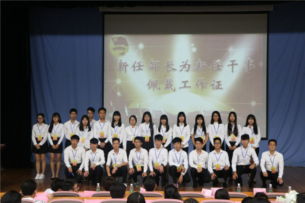 在换届环节,尹喜、袁仁广等为校团委第二届第七任全体部长以及干事颁发了聘书,新上任的部长为新干事们佩戴了工作证。