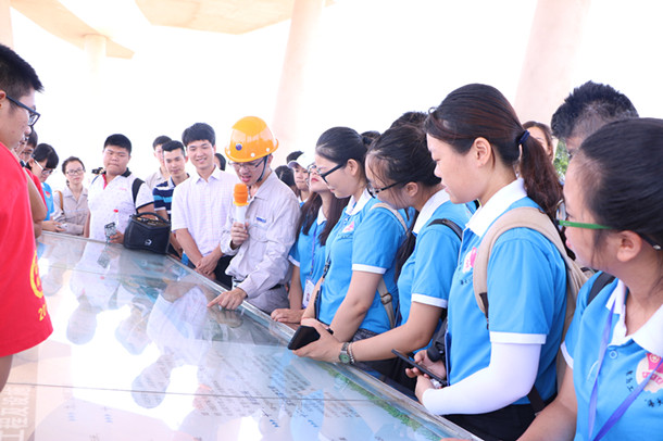 在湛江钢铁团委副书记周利鹏的带领下,学员们首先来到展示区,了解湛钢的整体环境和布局。周利鹏为同学们详细介绍了宝武集团的历史、绿色发展模式及厂区内的主要工程及设施,鼓励学员们要深刻认识到保护环境和实现可持续发展的重要性。接着,学员们在讲解人员的带领下参观了热轧厂。无论是每个工程的步骤还是每项技术的操作,都让大家切身体会到了宝武集团追求完美的工匠精神、追求卓越的创造精神和精益求精的品质精神。