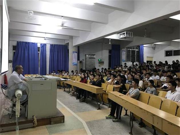 11月5日晚,数学与计算机学院党委副书记聂杰在海滨校区电教101室为学院17级生全体班干部开展题为《学生干部培养三种意识》的培训讲座。