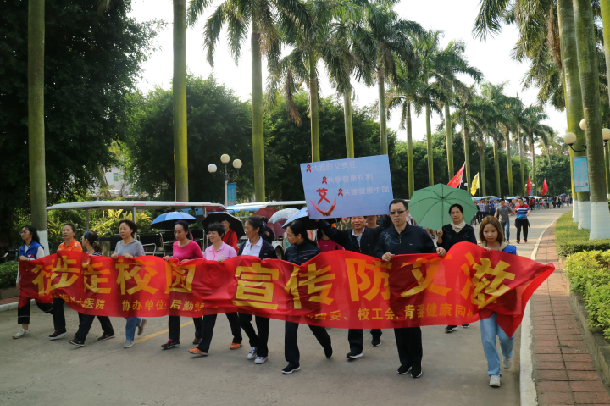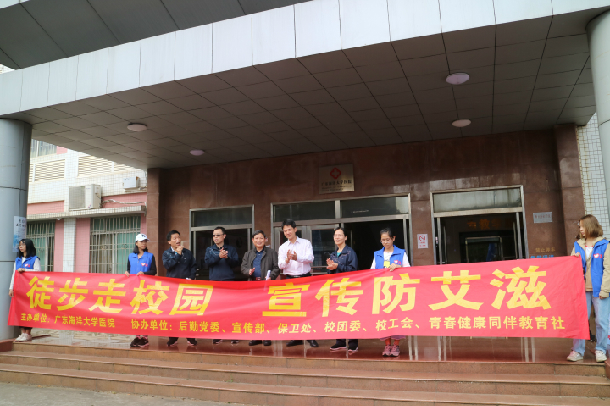 2017年12月1日是第30个“世界艾滋病日”,活动主题为“共担抗艾责任、共享健康权利、共建健康中国”。为响应广东省教育厅的号召,12月1日下午,由校医院主办,后勤党委、学生处、校团委、宣传部、保卫处、校工会、青志联医疗保健队、青春健康同伴教育社等部门协办的“徒步走校园,宣传防艾滋”活动启动仪式在湖光校区校医院成功举行。启动仪式由校医院副院长殷汉贤主持,后勤党委书记陈创、校团委副书记袁仁广、学校心理咨询中心王林召老师、各学院分管学生工作的领导及辅导员老师、校医院的医务人员、各学院的学生代表等1000余人参加了启动仪式。