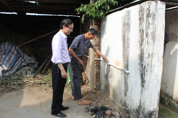 帮扶责任人察看帮扶贫困户安装自来水情况