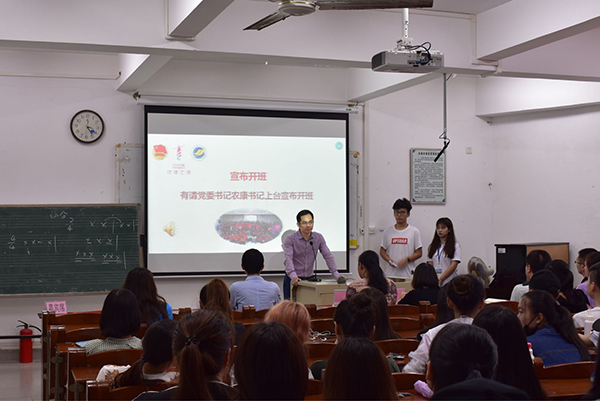 农康在开班仪式上首先代表学院对青马工程开班表示祝贺,对为培训班筹备工作付出辛勤劳动的老师和同学们表示感谢。他号召青马学员全面贯彻党的十九大精神,以习近平新时代中国特色社会主义思想为指导,深入贯彻习近平总书记重要讲话精神,以“学习理论走在前、立足岗位干在前、急难险重冲在前”为基本标准,带头坚定理想信念、带头练就过硬本领、带头勇于创新创造、带头矢志艰苦奋斗、带头锤炼高尚品格,发挥好青马学员的示范引领作用。为此,农康对学员们提出三点要求:一是要求学员们深刻认识青马工程的重要性和必要性。二是善于思考,勤奋学习,做学习工作进步,成长成才的积极促进者。三是高质量完成任务,做优秀的“青年马克思主义者培养工程”的践行者。
