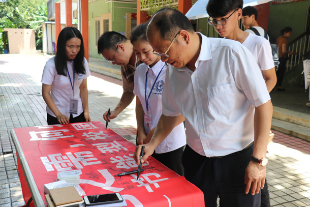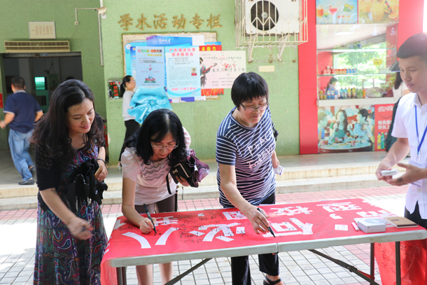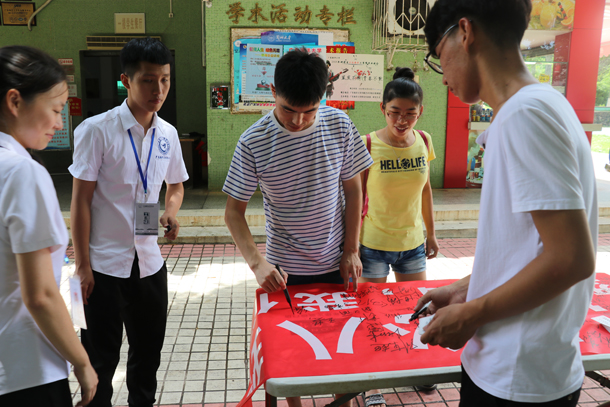 活动以横幅签名的形式进行,吸引了众多师生员工的参加。叶春海校长、刘东超副校长、高秀梅副校长等校领导和各职能部门、学院的领导老师纷纷在横幅上签上了自己的名字,以身作则支持光盘行动。