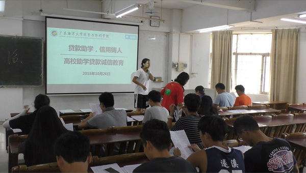 10月26日,体育与休闲院在主楼205教室举行了以“贷款助学、信用铸人”为主题的国家助学贷款合同签订仪式暨诚信教育活动,全院高校国家助学贷款学生参加了此次活动,会议由夏慈忠老师主持。