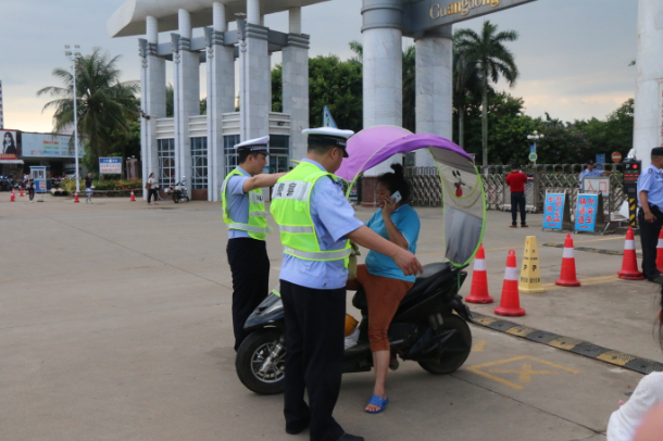 7月2日下午,校保卫处联合湛江市公安局交警支队机动巡逻大队继续开展交通安全整治行动。这是5月以来开展的第四次“创文”共建交通安全整治行动。在整治过程中,交警通过教育劝导以及开具罚单的方式,对驾驶电动自行车不戴头盔的违规行为进行纠正及处罚,达到了提高驾驶人的交通安全意识、培养驾驶人自觉遵守交通法规的目的,整治行动取得了良好的效果。