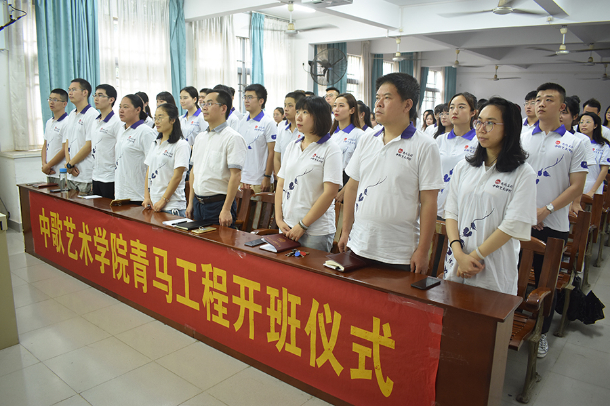5月29日中午,中歌艺术学院在美术楼302室举行“青马工程”第四期学生骨干培训班开班仪式。学院党委副书记农康、团委书记、全体辅导员老师、学院团委学生会相关干部及本期青马班全体学员80余人参加了开班仪式。