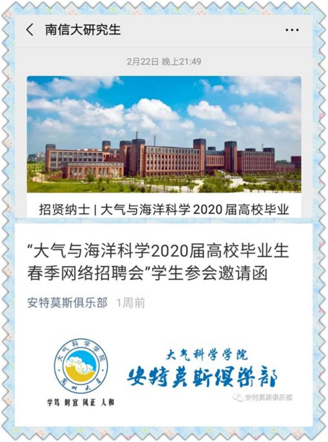 2月23日起,根据中央、广东省和学校对毕业生就业工作的相关要求,新云天气象工作室举办的“大气与海洋科学2020届高校毕业生春季网络招聘会”通过互联网正式开幕,为2020春季全国首个大气与海洋类招聘会。工作室全体同学及校内外导师克服部分企事业单位尚未复工等困难,成功邀请到复旦大学大气研究院、中科院大气所、南信大气象科技研究院、粤港澳大湾区气象监测预警预报中心、象辑科技、中科三清等12家知名企事业单位进入通过“新云天气象”微信公众号、QQ群和网站(http://www.xytqx.com/)搭建的虚拟展位,开展“空中宣讲”“在线面试”等招聘活动,提供高质量就业岗位近200个,涵盖大气科学、海洋科学等海洋与气象学院优势专业,也覆盖计算机类、数理类、资环类、文管类等通用专业。