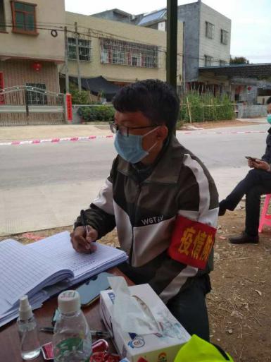 疫情无情,人间有爱。生物1171班的杜振雄同学遵从政府的防控策略,参加由村委组织的防控工作,从2020年2月9日至今,他每天坚守防控岗位,对过往人员进行体温测量,登记过往车辆,拦截外来车辆和人员。杜振雄同学表示这次疫情每个人都有责任为防控作出贡献,待在家里不乱出门是贡献,去村口一线站岗是贡献。他想为祖国献出自己的一份力,志愿加入村里的防控一线,不让疫情扩散,在这场疫情的防控战役中,展现当代大学生的优秀品行。