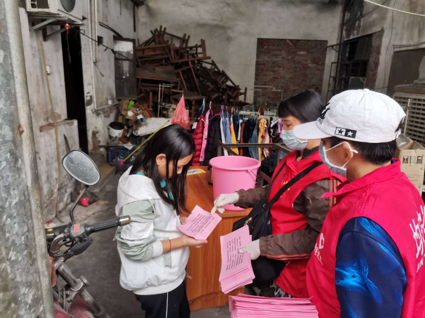 欧阳裕桐协助居委会工作人员宣传防控知识