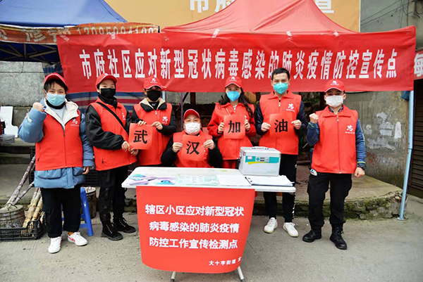贵州省凯里市,音教1162班的学生党员王梅芳参加了由团市委组织的为期3天的疫情防控志愿活动:打电话或入户进行信息排查、通过喇叭宣传防控知识、登记进出社区车辆及人员相关信息;在黔东南州医院门口发放防控知识手册、测体温等,用自己的实际行动为武汉加油。