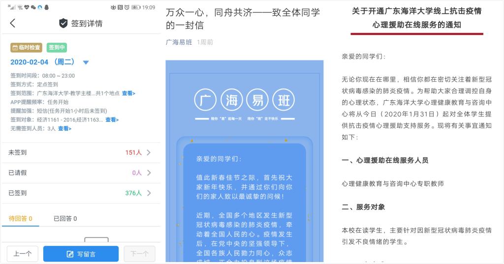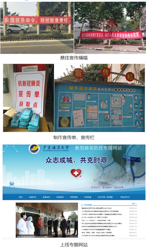 宣传部党支部认真学习贯彻习近平总书记关于打赢疫情防控阻击战的重要讲话和指示精神,把做好疫情防控宣传和舆论引导工作作为当前最重要的政治任务抓紧抓好。自学校疫情防控阻击战打响以后,支部党员集体放弃休假,自觉投入工作,坚持统筹线下线上、校内校外,以及时转发上级和学校有关文件通知精神,报道学校的工作部署要求及各单位各部门联防联控的措施成效,宣传党组织和党员坚守疫情防控一线先进事迹,加强健康理念和传染病防控知识的宣传教育为重点,全面展开强信心、暖人心、聚民心的“战疫”宣传。线下宣传方面,截至2月12日,在湖光、霞山、海滨三校区累计悬挂防控疫情相关横幅标语18条,制作张贴专题宣传栏34块、宣传海报55张,印制分发防疫科普宣传单3000份。网络和新媒体宣传方面,制作了学校疫情防控专题网站,在校园网主页要闻和快讯栏目编发新闻18条。学校官微保持每日更新,1月21日以来共发布疫情防控信息50条,有关内容分别被广东省教育厅官微、广东高校易班发展中心官微、中青校媒广东官微等公众号引用。对外宣传方面,注重选取有角度、有温度、有深度的新闻报道,积极向各级各类媒体供稿,截至目前,在学习强国平台、南方+、南都教育、湛江日报等媒体上累计发布宣传报道20篇,有效扩大了学校“战疫”工作的社会影响。支部党员还积极加入“艺心战疫”行动,主动与中歌艺术学院联系沟通,与学院老师联合制作推出AC米兰“战疫”歌曲《你真好》,经师生在朋友圈海量转发点赞,在社会上产生了广泛反响。支部相关负责同志深刻认识做好疫情期间意识形态安全工作的重要性和紧迫性,进一步落实意识形态工作责任制,严格按照上级和学校党委要求,加强对校内各级各类媒体稿件、栏目的审核把关,加强对微信、微博、自媒体的监督监管,安排专人对网络舆情开展24小时全方位监控,有效维护了学校在疫情防控期间的意识形态安全和政治安全。