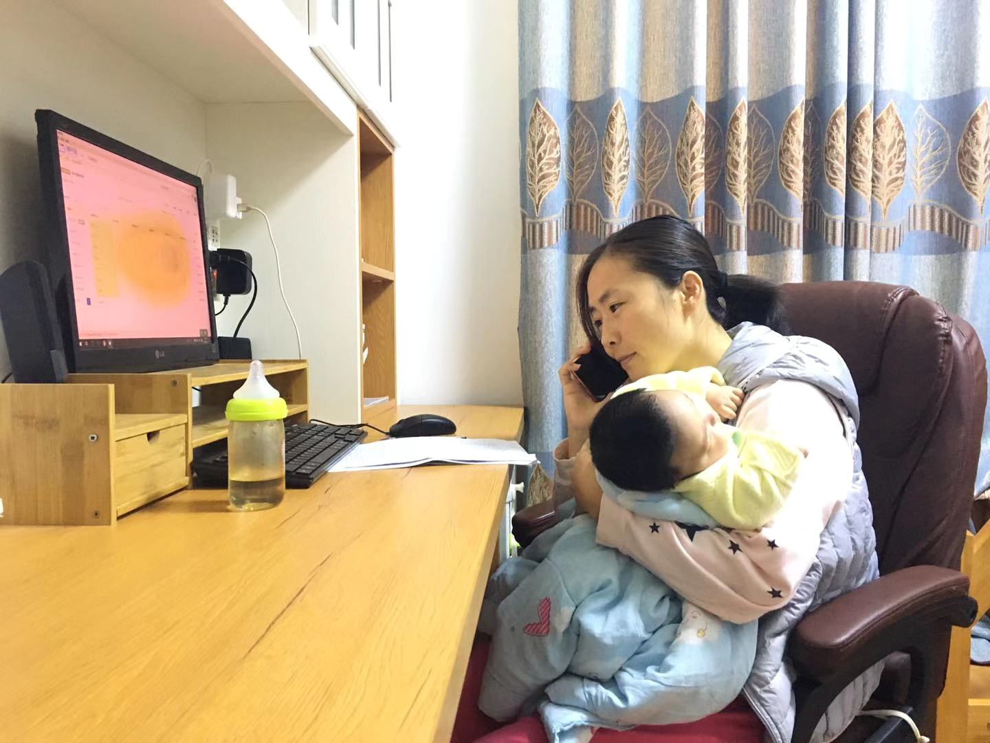 排查防控工作数据繁多,要全面掌握学生信息,必须细致谨慎,对于一般辅导员来说已经是挑战,对于一位刚生育二胎不久仍在产假中的妈妈来说更不容易。为了完成工作,张丽常常是利用小孩睡觉的时间,早晨提前起床或深夜后来完成,甚至有时抱着哭着的小孩坐在电脑前查看学生信息或打电话向学生解释学校的工作通知、政策安排等。一开始家人对她这种主动承担工作、无私奉献的忘我精神不理解,担心她劳累影响身体,但是她耐心地劝说自己的家人,“这时候学院辅导员缺编,人手不足,学院需要我;我之前一直分管着2017级的学生,我对他们了解、有感情,他们也需要我,我会注意休息,照顾好孩子和自己的。”她还坚定地说:“我虽然是在休产假,但我更是一名党员,这时候就理应坚守岗位,为学生的生命安全和身体健康负责,这是我应该做的。”看到张丽的坚持,家里人的态度也慢慢从不理解转变为支持。