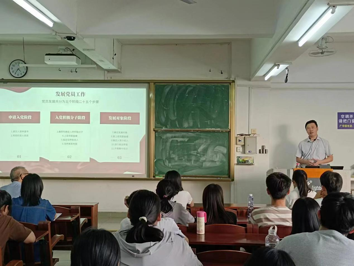 为了进一步规范党员发展工作,10月25日下午,文学与新闻传播学院党委以发展党员专项检查工作为契机,邀请组织部王兴龙老师在广学楼705室开展党务工作培训讲座。本次培训会由学院党委副书记胡墨主持,学院党支部委员会委员、党务工作助理、党建创新发展中心学生干部等53人参加会议。