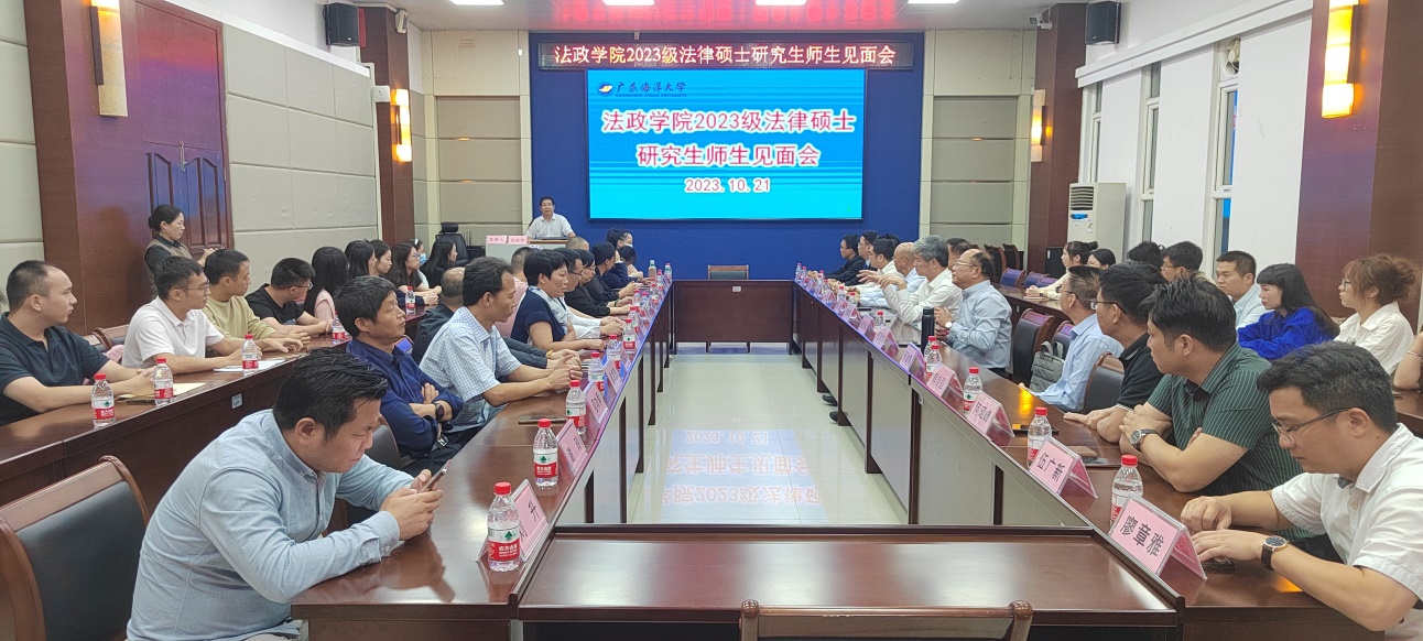 10月21日下午,法政学院在湖光校区召开了2023届法律硕士研究生与校内外导师见面会。校外15位导师和校内10位导师参加了会议。学院书记陈伟斌致开幕词,院长张显伟主持会议,湛江市司法局局长颜战克作为校外导师代表讲话。其他导师也都依据自身经验做了发言,并提出了建议与希望。2023级全体研究生也都逐一进行自我介绍,并对导师们的到来表示衷心的感谢。
