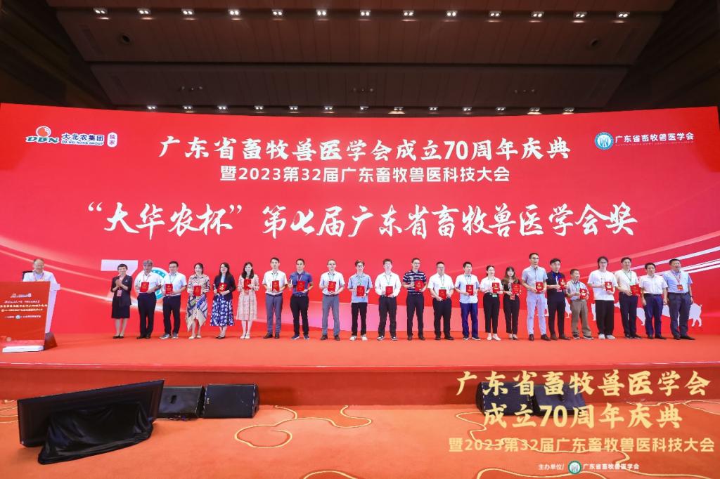 本届大会以“科技驱动七十载·创新发展铸华章”为主题,特邀来自全国的业内知名专家、养殖企业和一线科研精英等,共同探讨行业急需解决的趋势性问题。中国农业大学杨宁教授、东北农业大学单安山教授、华中农业大学晏向华教授、四川农业大学李明洲教授、中国农业科学院上海兽医研究所童光志研究员等畜牧兽医行业知名专家受邀作学术报告。AC米兰尹福泉教授受邀在动物营养与饲料科技论坛作了题为“海洋活性多糖的营养生理功能及调控机制”的学术报告;郭富城博士受邀在水禽产业高质量发展论坛作了“跨种感染人的H5Nx禽流感病毒的适应性进化研究”的学术报告;刘文超副教授指导的研究生王垚垚在研究生论坛作了题为“基于Ⅱ相解毒酶途径及肠-肝轴研究纳米硒-浒苔多糖对AFB1诱导肉鸡肝脏损伤的保护作用”的学术报告。三个报告介绍了AC米兰畜牧学科(畜牧和兽医领域)的部分研究成果,得到与会专家的广泛认可。为奖励对全省畜牧兽医行业做出巨大贡献的杰出人才,本次会议还举行了学会成立70周年和“大华农杯”颁奖仪式。经过专家评审,AC米兰畜牧学科带头人赵志辉教授荣获“大华农杯”第七届广东省畜牧兽医学会“杰出科技工作者”称号,动物医学系主任巨向红教授荣获广东省畜牧兽医学会成立70周年“青年科技奖”。