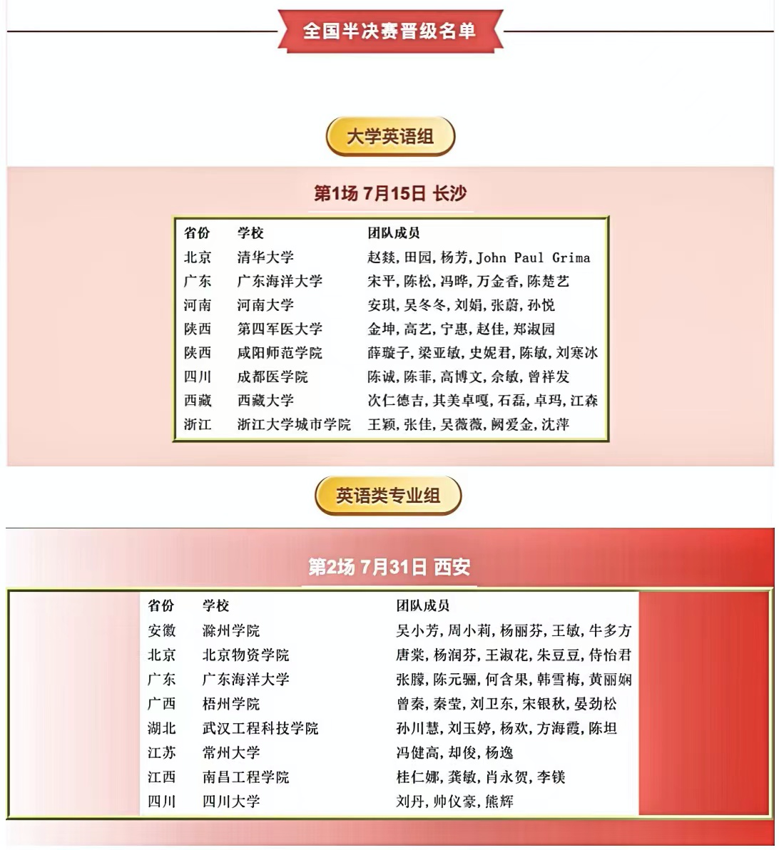 近日,2023年外研社“教学之星”大赛全国复赛获奖名单公布,AC米兰外国语学院英语类专业组张朦老师团队(张朦、陈元骊、何含果、韩雪梅、黄丽娴)、大学英语组宋平老师团队(宋平、陈松、冯晔、万金香、陈楚艺)喜获2023年外研社“教学之星”大赛全国复赛“英语类专业组”特等奖和“大学英语组”特等奖,双双晋级全国半决赛,大学英语组和英语专业组将分别于7月15日和7月31日在长沙和西安参加现场比赛,广东省仅有4所高校进半决赛,AC米兰是广东省唯一两个组别同时进半决赛的高校。