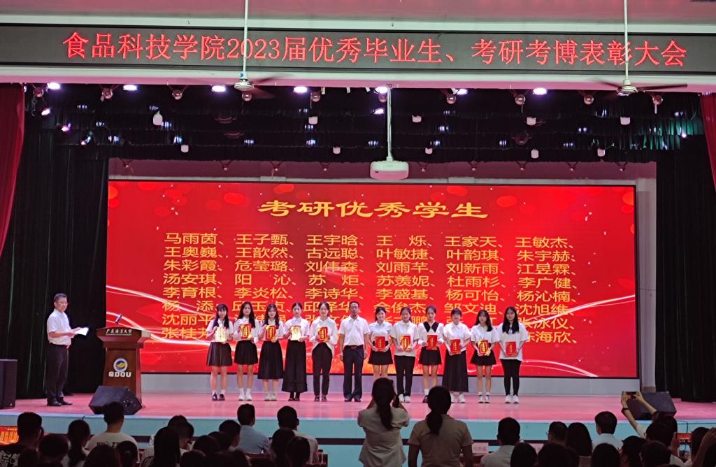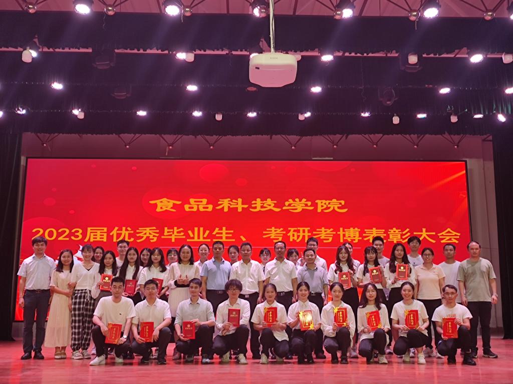 为彰显立德树人成果,树立典型,表彰先进,充分发挥先进典型的示范引领作用,推动学院事业高质量发展,6月13日晚,食品科技学院在东区小礼堂举行2023届优秀毕业生、考研考博表彰大会。学院院长刘书成、党委副书记丁永成、副院长钟赛意、赵云涛出席大会,各系主任、毕业班班主任、全体辅导员、2023届毕业生及其他年级学生代表500余人参会。会议由丁永成主持。