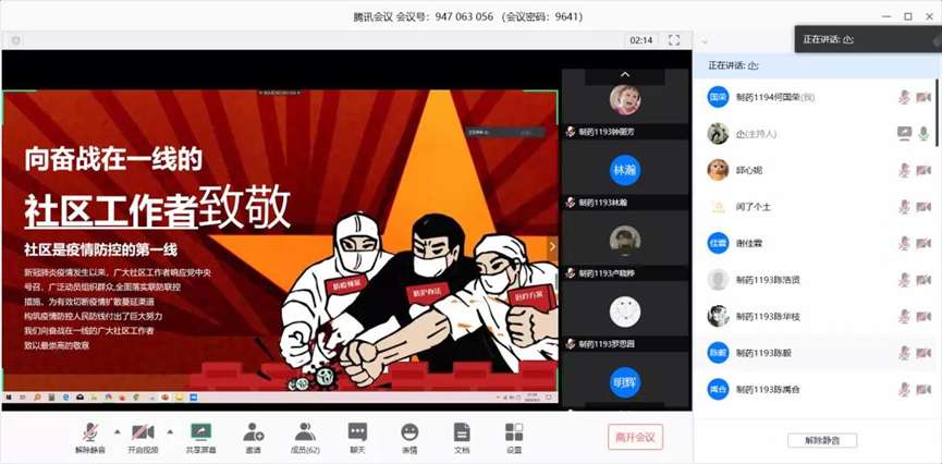 为贯彻落实“停课不停学”的工作要求,加强学院学生在疫情期间的思想引导、教育管理和素养提升,强化学生居家网络学习期间的学风建设,3月25日-4月3日,化学与环境学院组织班主任向全院59个班级召开疫情防控网络主题班会。网络主题班会旨在积极了解学生思想动态,引导学生做防控疫情的坚定拥护者、防控工作的坚定落实者,勇于肩负起时代赋予的使命与责任。