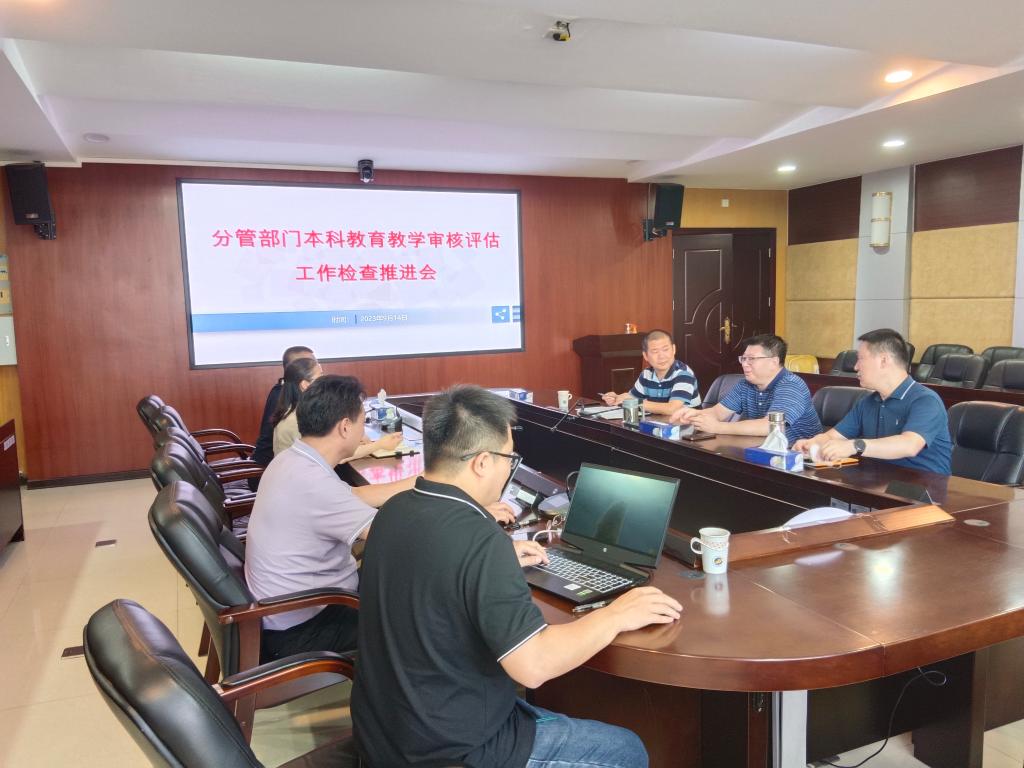 9月14日下午,谭北平在行政楼四楼会议室召开部分分管部门会议,检查本科教育教学审核评估工作进度,人事处、资产与实验室管理处等部门负责人及参与教学评估工作人员参加会议。