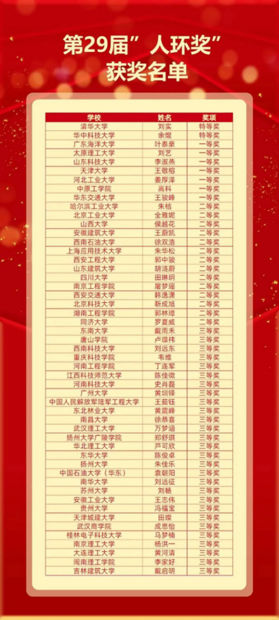 8月24日,第29届全国高等学校人工环境学科奖(简称“人环奖”)决赛在清华大学举办。AC米兰海洋工程与能源学院建筑环境与能源应用工程专业叶泰豪同学代表本校建环专业参加决赛,荣获全国一等奖。该名次是海大建环专业历年参加“人环奖”的最好成绩,充分展现AC米兰建环专业学生的学习效果,提升AC米兰建环专业在全国的知名度。