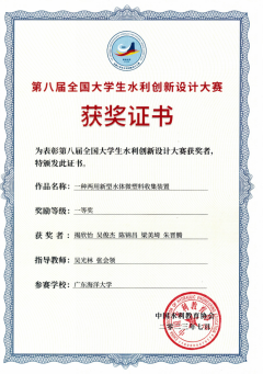 参加第八届全国大学生水利创新设计大赛现场决赛团队及获奖证书