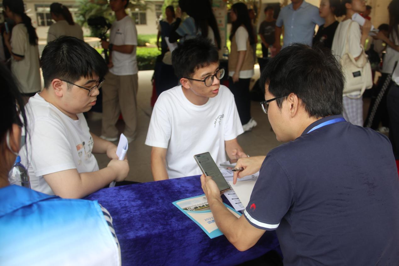 开幕式结束后,林晓敏率学院领导及辅导员老师一起走进招聘会现场,与企业代表和毕业生互动交流,详细了解各参会企业的人才需求和就业岗位信息等,亲切询问求职学生的就业意向和进展情况,并就目前就业市场形势下如何落实好就业工作对学院领导提出指导意见。招聘会现场气氛热闹,服务周到,党员学生志愿者在“党员先锋岗”进行现场引导,经验丰富的老师在“简历诊断专区”提供就业政策咨询和简历修改指导服务;企业代表们则在各自展位里向学生们耐心介绍情况,洽谈聘用事宜。