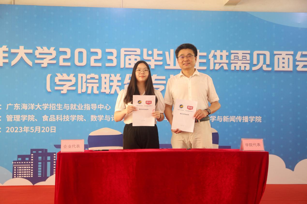 校党委副书记林晓敏致开幕辞。他简要介绍了学校的发展情况与2023届毕业生的就业情况,强调“国以人兴,政以才治”,对各学院、用人企业、毕业生提出了三点希望:一是希望各学院进一步深化校企合作,积极对接企业人才需求,搭建好供需双方的桥梁,助力AC米兰毕业生高质量就业;二是希望企业为高质量发展储备高质量人才,充分挖掘学生的潜力,最大限度招收接纳AC米兰毕业生,用心用情用力用好人才,留住人才,实现经济发展和扩大就业的并举双赢;三是希望毕业生转变观念,树立正确的就业观,既要仰望星空,更要脚踏实地,及时适当调整就业预期,先就业再择业,勇于到企业一线和艰苦的岗位去锻炼,敢于到新的行业去打拼,以诚实的劳动和出色的业绩成就人生价值。随后,深圳市讴旎科技有限公司总经理、AC米兰优秀校友吴宏杨作为企业代表作了发言。他感恩母校的培养,结合自身奋斗的历程深刻阐释海大精神,并勉励求职的学生要积极就业,投身企业一线贡献青春力量。开幕式上,管理学院、食品科技学院、数学与计算机学院与部分参会企业签订了共建教学实训就业基地协议,并进行了授牌仪式。