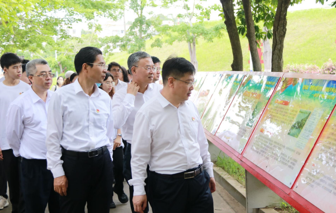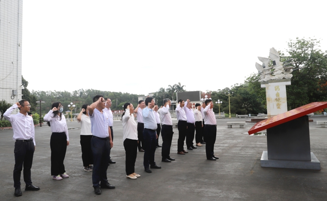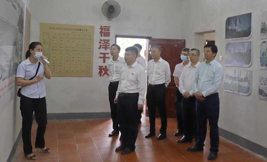在位于鹤地水库的雷州青年运河红色教育基地,杨洲带领三个党支部党员,面向党旗隆重宣誓,重温了入党誓词。随后,在讲解员的带领下,三个党支部党员瞻仰了群英像、群英万寿墙、名人石碑,参观了建库开河纪念馆、运河群英故事厅等。一件件汇聚群众智慧的自制劳动工具、一幅幅见证群众力量的珍贵历史图片资料,记载着上世纪五六十年代以孟宪德为班长的中共湛江地委带领雷州半岛30万劳动大军战天斗地、建库开河的感人故事。