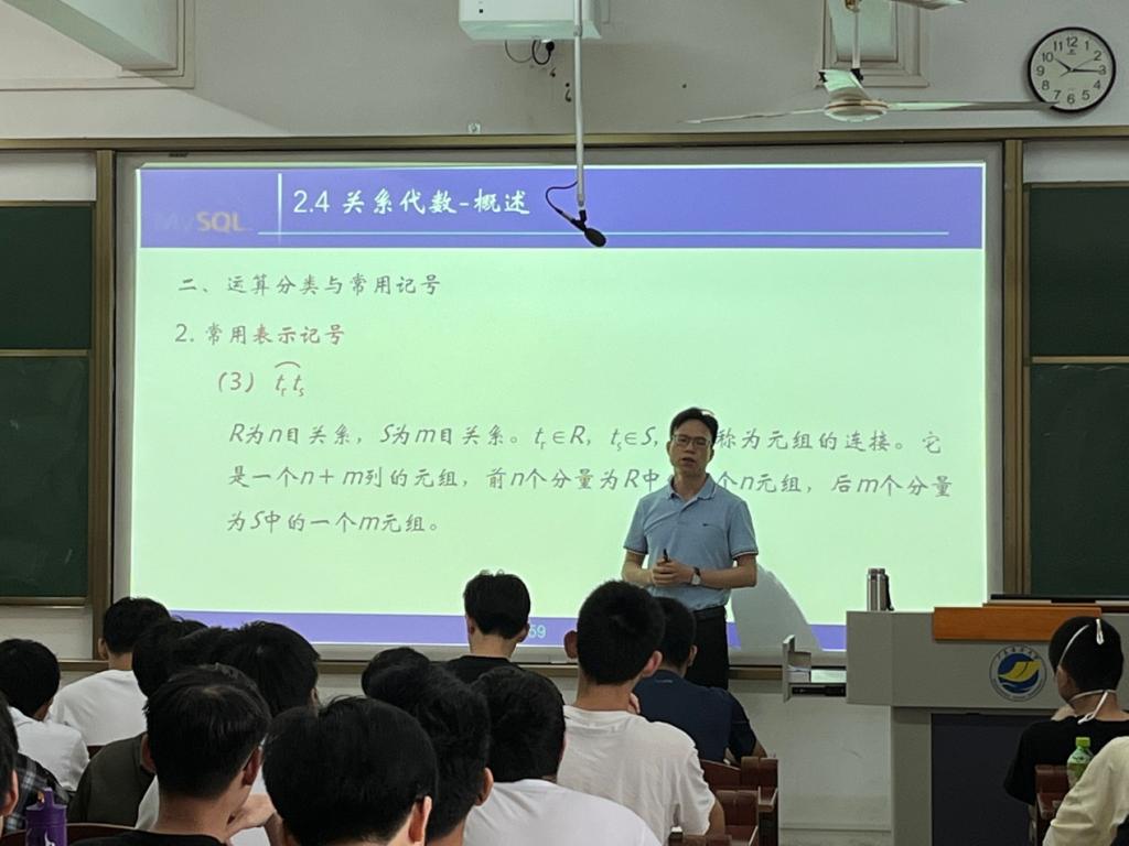 课堂上,冼远清围绕《数据库原理及应用》中的关系代数、传统综合运算、专门的关系运算等内容进行讲授,课堂上既穿插了启发式问题,也穿插了知识点练习,还有融入“课堂思政”元素,整个教学主题突出,结构清晰、思路清晰、内容丰富、逻辑性强,将相对枯燥的基本知识深入浅出讲解,语言表达松弛有度,声情并茂,富有感染力,得到在场观摩教师的肯定与赞赏。大家一致认为该公开课在教学内容、教学方法以及教学效果等方面均取得了较好的预期效果,对学院整个课堂教学工作具有一定的学习借鉴意义。