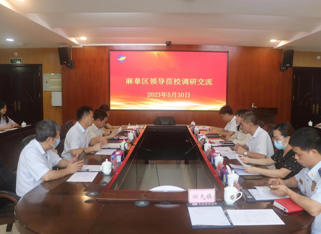 5月30日下午,麻章区政府副区长李倩怡、麻章区政协副主席刘阳率区住建局、发改局、教育局、消防局、麻章镇等负责人一行来校调研交流,并在行政楼4楼会议室召开座谈会。座谈会由校长办公室主任尹喜主持,基建处、资产与实验室管理处、财务处负责人参加座谈会。