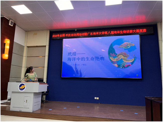 本次比赛初赛以线下答题与讲解视频投稿双赛道的形式进行筛选晋级,初赛有150名大学生参赛,有18名选手进入复赛,复赛进行海洋生物线下PPT讲解。历经半个月,最终决出8名选手进入决赛。