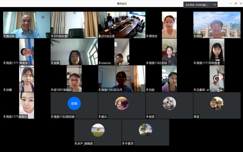 6月24日上午,水产学院海渔系教工党支部在霞山校区图书馆二楼会议室通过现场与视频会议相结合的方式开展迎七一“云端”讲党课组织生活会,水产学院党委书记梁朝辉、海渔系教工党支部全体党员、海渔系学生党员共40余人参加了会议。