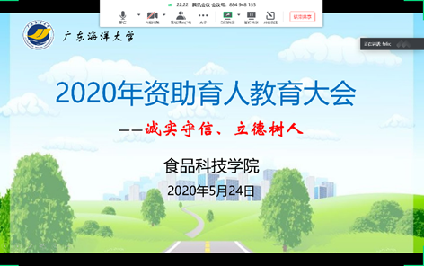 为贯彻落实国家资助政策及育人工作,增强2020届贷款毕业生诚信意识和感恩意识,帮助其了解还本付息操作方法,5月24日晚,食品科技学院在腾讯会议平台召开2020届贷款毕业生资助育人教育会议。学院全体贷款毕业生参加会议,会议由负责资助工作的辅导员许永强老师主持。