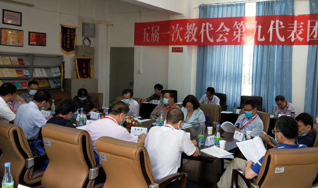 5月15日,五届一次教代会第一次全体会议结束后,第九代表团全体代表在钟海楼03009室召开分组讨论会,对校长工作报告等大会文件进行讨论审议。副校长高秀梅、人事处处长洪鹏志、资产与实验室管理处处长张界新等听取讨论。会议由代表团团长詹衍玲主持。