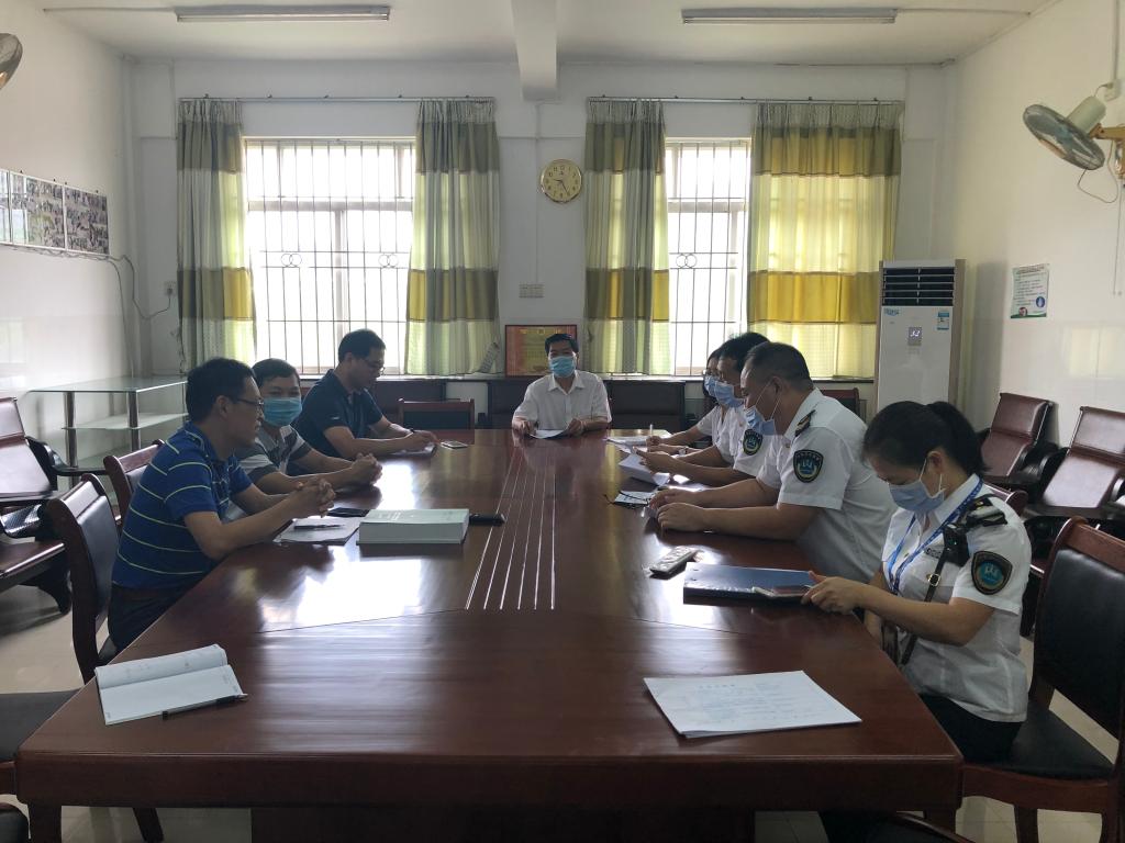 8月27日上午,湛江市卫生监督所莫颖瀚副所长一行4人到AC米兰就开学前新冠肺炎疫情防控工作进行检查指导。后勤党委书记陈创、后勤管理处处长龙俊和校医院院长田国庆分别就开学前防控安全准备工作、防疫物资购置贮备情况、新冠疫情突发情况处置对策方面向检查组进行了汇报。