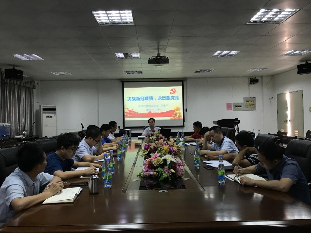 为庆祝中国共产党成立99周年,进一步激励学院师生坚定理想信念,不忘初心、牢记使命,6月28日上午,食品科技学院党委在第三实验楼A105会议室召开了党委中心组理论学习(扩大)会议,主要议题是学习贯彻全国“两会”精神和讲授微党课。会议由学院党委书记苏永华主持,学院领导、系(中心、办)负责人、党支部书记和辅导员参加了会议。