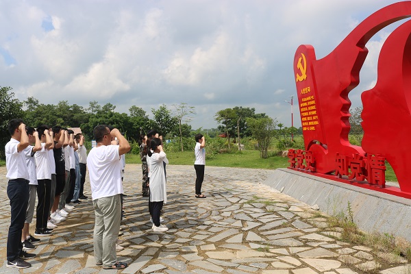 随后,全体党员、干部近30人集中乘车,前往遂溪县下洋村红色教育基地接受革命优良传统再教育。在下洋村,大家聆听了村党支部李书记对该村有关情况的介绍,参观了粤桂边区人民解放军东征支队誓师广场、初心广场。在初心广场,邓伟领誓,全体党员重温入党誓词。接着,跟着李书记的指引,大家瞻仰了东征支队誓师首发地碑志和朝东公祠,聆听了解了东征支队的光辉革命战史和涌现的杰出人物。“下洋誓师东征、粤中杀敌扬名”,通过参观学习、今昔对比,进一步增进了全体党员的党性,更加坚定了理想信念,大家纷纷表示要向革命先辈先烈学习,不忘初心、牢记使命,立德树人、教书育人,不断培育新时代合格建设者和接班人。