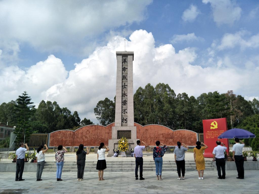 全体党员在柑村广东南路革命化州纪念馆革命烈士纪念碑前庄严肃立,向先烈默哀、行鞠躬礼,敬献鲜花,向革命先烈表达崇敬之情。徒步绕行纪念碑一周,深情瞻仰烈士纪念碑,深切缅怀革命先烈的丰功伟绩。在纪念碑前,张界新带领全体党员重温了入党誓词,以铮铮誓言表达对党忠诚,为党的事业奋斗终生的决心。